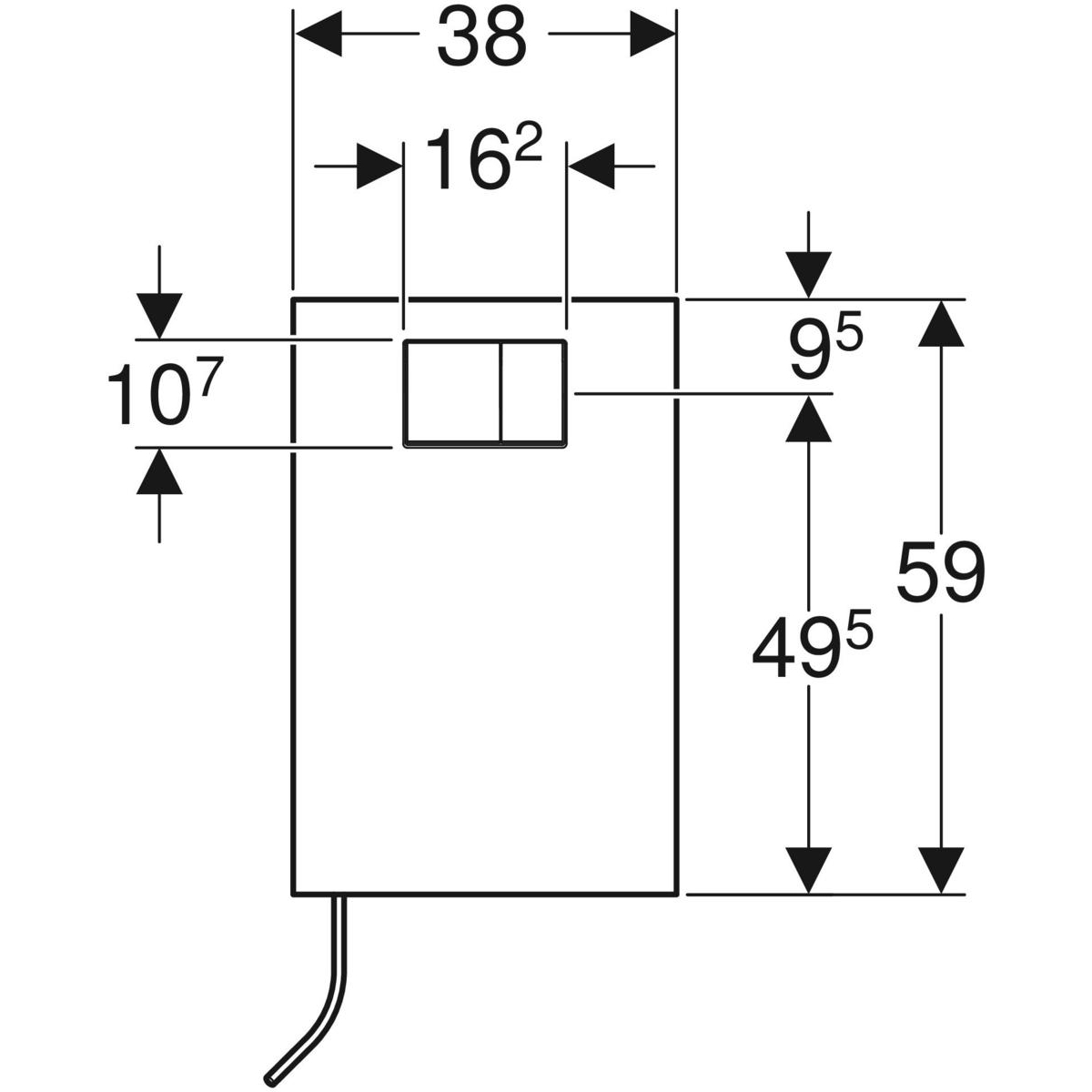 Zestaw uzupełniający montowany i demontowany bez uszkodzenia powierzchni płytek ceramicznych Płytka przykrywająca ze zintegrowanym uruchamianiem spłukiwania dwudzielnego Uruchamianie przycisku zlicowane z powierzchnią ściany Przycisk uruchamiający chromowany matowy Zakryte przyłącze wody w płytce przykrywającej Do przyłączania desek sedesowych Geberit AquaClean do spłuczek podtynkowych Do przyłączania Geberit AquaClean 4000 do spłuczek podtynkowych Do przyłączania Geberit AquaClean 5000 i Geberit AquaClean 5000plus do spłuczek podtynkowych Do przyłączania desek sedesowych Geberit AquaClean Tuma Do spłuczek podtynkowych Sigma 12 cm Do spłuczek podtynkowych Twinline 12 cm (produkowanych od 1997 lub 1988 roku z zamontowanym zestawem adaptacyjnym do spłukiwania dwudzielnego) Do spłuczek podtynkowych Sigma, jeśli nie można wykonać wymaganego otworu na przyłącze wody (np. w wynajmowanym mieszkaniu) Do powierzchni całkowicie pokrytych płytkami ceramicznymi Kolor główny: Czarny Powierzchnia: Szkło Zawartość: Płytka przykrywająca 4 popychacze Złączka przejściowa z płaskim uszczelnieniem na uszczelnieniu radialnym Trójnik Y Wężyk podłączeniowy Elementy mocujące