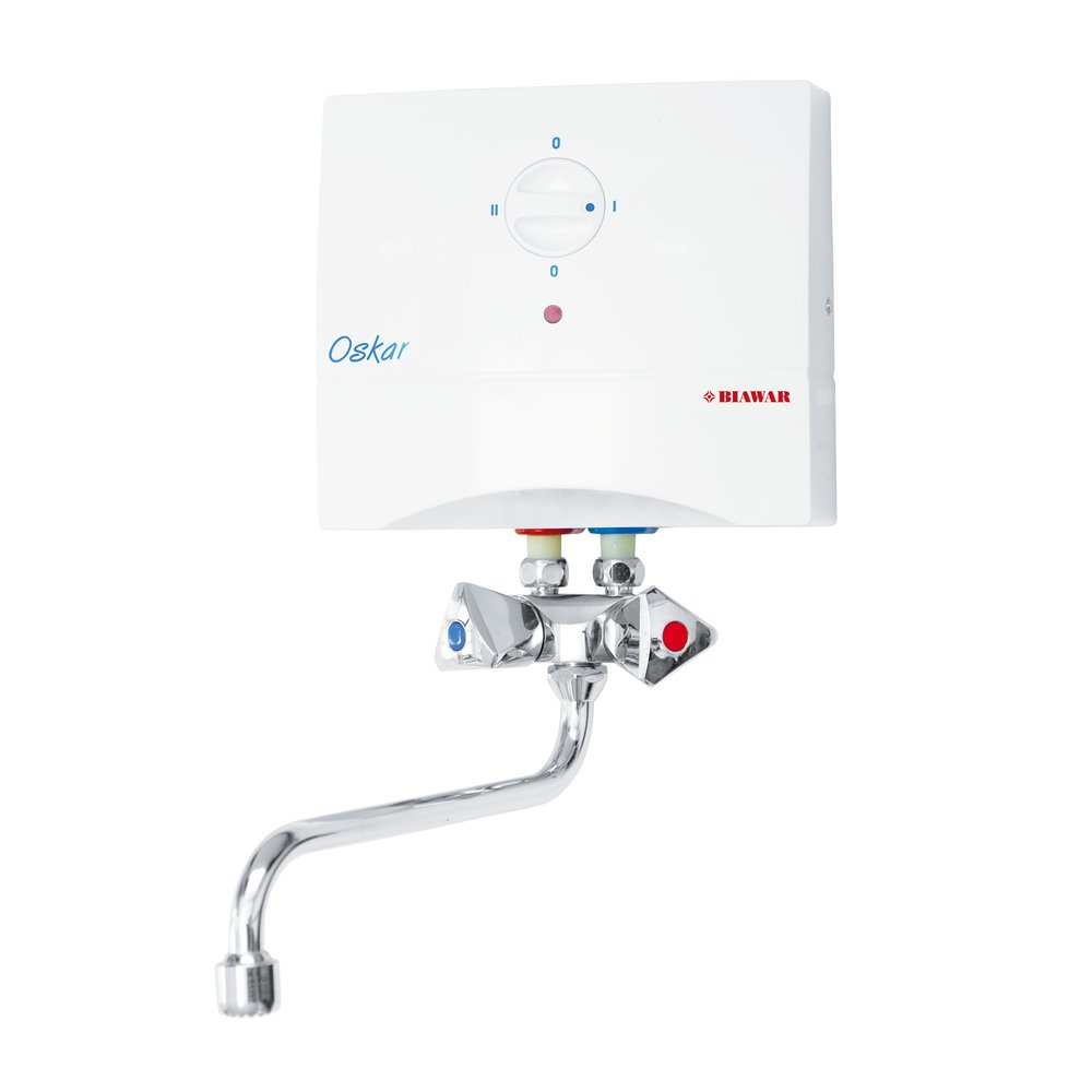 Podgrzewacze przepływowe serii Oskar to nowoczesne i ekonomiczne rozwiązanie podgrzewania ciepłej wody. Do obsługi jednego punktu poboru służą urządzenia bezciśnieniowe standardowo wyposażone w odpowiednią armaturę w zależności od wybranej wersji ogrzewacza (wersja umywalkowa, wersja prysznicowa oraz wersja umywalkowo-prysznicowa z zastosowanym specjalnym przełącznikiem). Oskar ciśnieniowy, montowany pod umywalką może obsługiwać maksymalnie dwa punkty poboru wody. Seria Oskar wyposażona jest w pokrętło do dwustopniowej regulacji mocy grzania (3,5 kW i 5,5 kW)