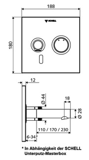 Do skrzynki podtynkowej Masterbox WBW-E-M. Sterowany czujnikiem podczerwieni. Zasilanie sieciowe. Przeznaczony do połączenia w sieć z systemem zarządzania wodą SCHELL SWS. Parametryzowana przez SCHELL Single Control SSC.