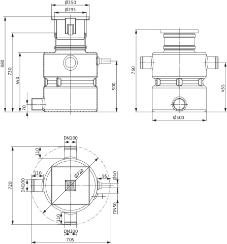 Gotowe do podłączenia, automatyczne urządzenie do przetłaczania ścieków w formie układu jednopompowego do instalacji podpowierzchniowej do tłoczenia ścieków bez fekaliów (zgodnie z normą EN 12050-2). Studzienka z tworzywa sztucznego z dwoma przyłączami dopływu, kompletne orurowanie z zabezpieczeniem przed przepływem zwrotnym i wstępnie zainstalowaną pompą. Pompa zatapialna w wersji dla prądu zmiennego z samoczynnie włączaną termiczną kontrolą silnika i wbudowanym wyłącznikiem pływakowym do sterowania niezależnie od poziomu.