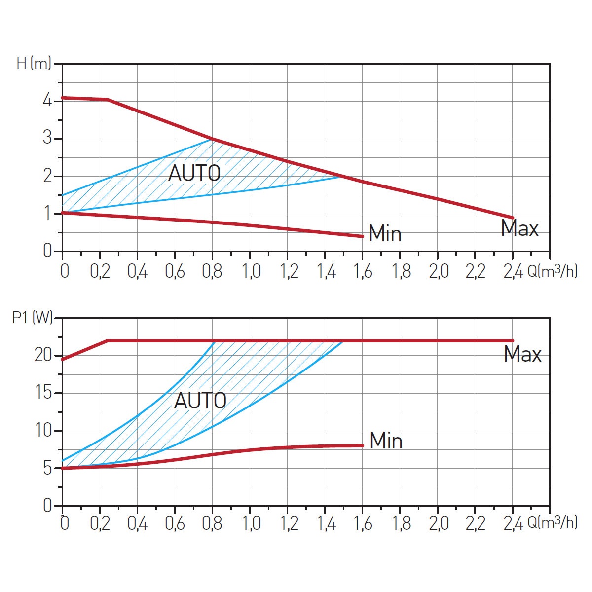 Korpus pompy wykonany jest z żeliwa, obudowa silnika odlana z aluminium, a wirnik uformowany z tworzywa. Wysokiej jakości silnik sterowany elektronicznie nie wymaga ochrony przed przeciążeniem. Pompa posiada regulację potencjometryczną, za pomocą której można w płynny sposób sterować jej wydajnością. Wyposażnona jest ona także w funkcję automatycznej adaptacji do układu, w którym jest zamontowana, co oznacza, że dostosowije ona swoją wydajność tak aby zoptymalizować prac