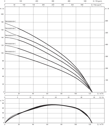 Pompa głębinowa 3-fazowa WILO Sub TWI 8.80-05-C-SD częstotliwość 50 Hz, moc 18.5 kW 40 A, prędkość obrotowa 2850 obr/min