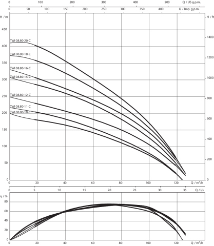 Pompa głębinowa 3-fazowa WILO Sub TWI 8.80-12-C-SD częstotliwość 50 Hz, moc 55 kW 104 A, prędkość obrotowa 2900 obr/min