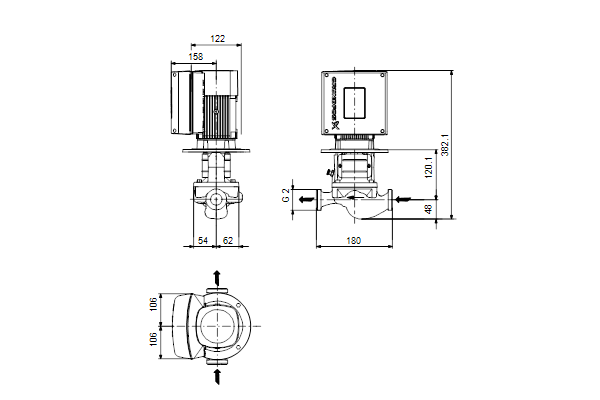 Jednostopniowa, spiralna pompa z krótkim sprzęgłem i króćcem ssawnym i tłocznym, o identycznej średnicy, w jednej osi (in-line). Pompy mają konstrukcję umożliwiającą demontaż od góry (typu "top-pull-out"), tj. głowica napędowa (silnik, głowica pompy i wirnik) może być wyjmowana w celu konserwacji lub serwisowania, gdy korpus pompy pozostaje przyłączony do rurociągów.