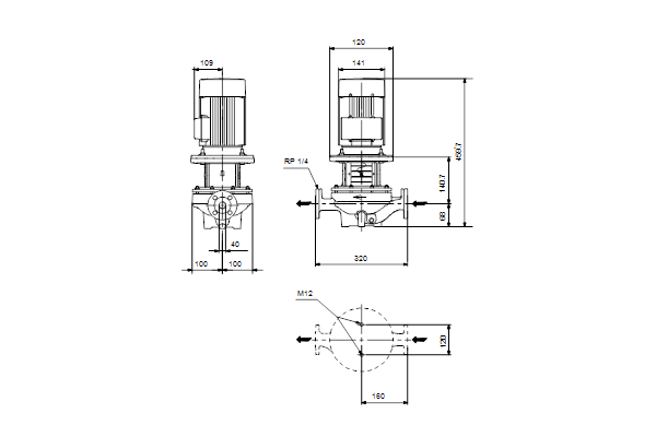 Jednostopniowa, spiralna pompa z krótkim sprzęgłem i króćcem ssawnym i tłocznym, o identycznej średnicy, w jednej osi (in-line). Pompy mają konstrukcję umożliwiającą demontaż od góry (typu "top-pull-out"), tj. głowica napędowa (silnik, głowica pompy i wirnik) może być wyjmowana w celu konserwacji lub serwisowania, gdy korpus pompy pozostaje przyłączony do rurociągów.