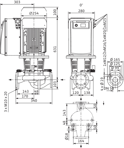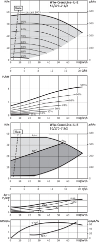 *Interfejsy: Wejście sterujące „Wyłączanie z priorytetem”, „Zewnętrzna zamiana pomp” (działa tylko w trybie dwupompowym), wejście analogowe 0-10 V, 2-10 V, 0-20 mA, 4-20 mA do trybu sterowania (DDC) lub do zdalnej regulacji wartości zadanej, wejście analogowe 0-10 V, 2-10 V, 0-20 mA, 4-20 mA dla sygnału wartości rzeczywistej czujnika ciśnienia, złącze na podczerwień do komunikacji bezprzewodowej za pomocą urządzenia kontrolno-serwisowego Wilo-IR-Stick/IR-Monitor, gniazdo na IF-Moduły Wilo do podłączenia do automatyki budynku, konfigurowana, bezpotencjałowa sygnalizacja awarii i pracy/stanu gotowości, interfejs do komunikacji pomp podwójnych