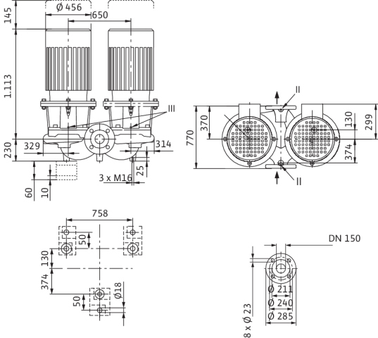 Pompa obiegowa WILO CronoTwin-DL 150/335-45/4-S1 typu in-line z silnikiem znormalizowanym 50 Hz, moc silnika 45kW 83.1 A 1450 obr/min, wlot Kołnierz DN 150
