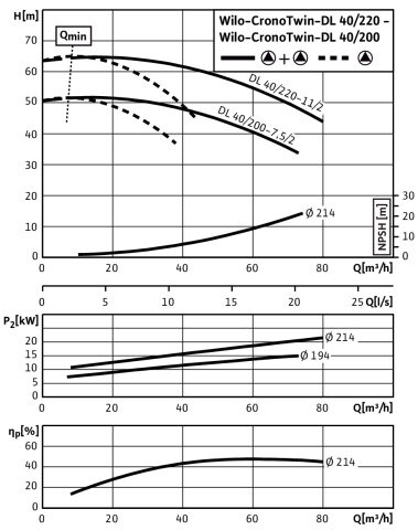Pompa obiegowa WILO CronoTwin-DL 40/220-11/2-IE3 typu in-line z silnikiem znormalizowanym 50 Hz, moc silnika 11kW 20.5 A 2900 obr/min, wlot Kołnierz DN 40