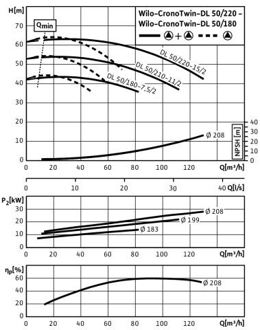 Pompa obiegowa WILO CronoTwin-DL 50/220-11/2-IE3 typu in-line z silnikiem znormalizowanym 50 Hz, moc silnika 11kW 20.5 A 2900 obr/min, wlot Kołnierz DN 50
