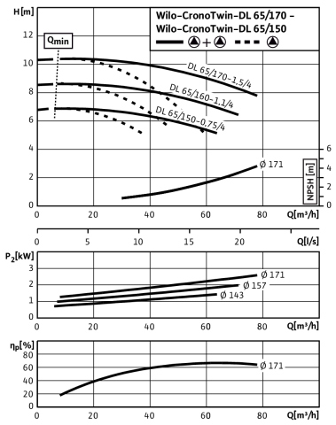 Pompa obiegowa WILO CronoTwin-DL 65/170-1,5/4-IE3 typu in-line z silnikiem znormalizowanym 50 Hz, moc silnika 1.5kW 3.6 A 1450 obr/min, wlot Kołnierz DN 65