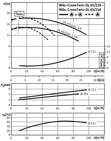 Pompa obiegowa WILO CronoTwin-DL 65/220-3/4-IE3 typu in-line z silnikiem znormalizowanym 50 Hz, moc silnika 3kW 6.5 A 1450 obr/min, wlot Kołnierz DN 65