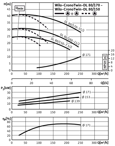 Pompa obiegowa WILO CronoTwin-DL 80/170-15/2-IE3 typu in-line z silnikiem znormalizowanym 50 Hz, moc silnika 15kW 26.8 A 2900 obr/min, wlot Kołnierz DN 80
