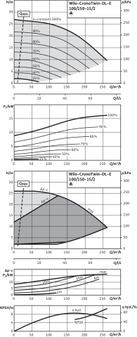 Pompa obiegowa WILO CronoTwin-DL-E 100/150-15/2-R1-IE4 typu in-line z silnikiem znormalizowanym 50/60 Hz, moc silnika 15kW 27.8 A 2900 obr/min, wlot Kołnierz DN 100