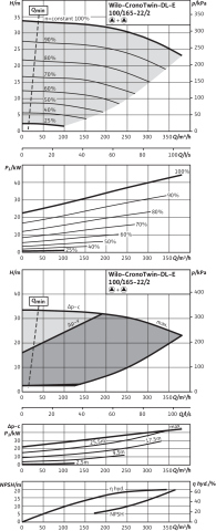 Pompa obiegowa WILO CronoTwin-DL-E 100/165-22/2-R1-IE4 typu in-line z silnikiem znormalizowanym 50/60 Hz, moc silnika 22kW 39.9 A 2900 obr/min, wlot Kołnierz DN 100