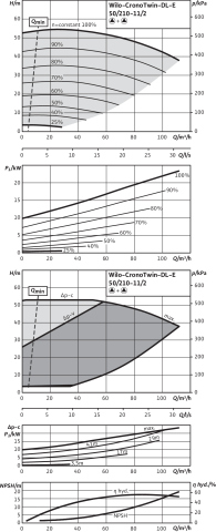 Pompa obiegowa WILO CronoTwin-DL-E 50/210-11/2-R1-IE4 typu in-line z silnikiem znormalizowanym 50/60 Hz, moc silnika 11kW 20 A 2900 obr/min, wlot Kołnierz DN 50