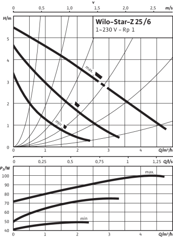 Pompa obiegowa WILO STAR-Z 25/6, 1900 obr/min 1 x 230 V 50 Hz, PN 10/10bar
