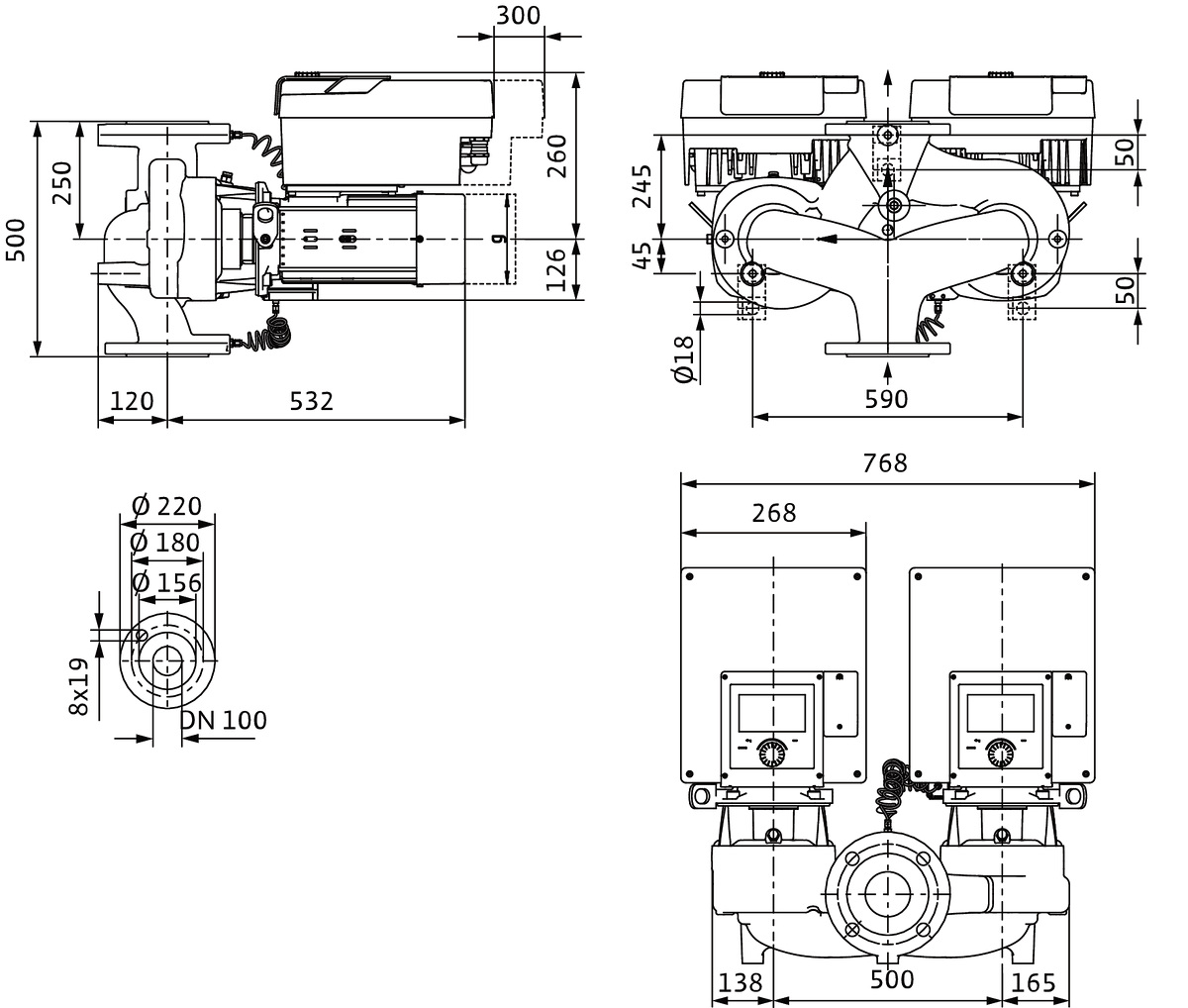 Pompa obiegowa WILO Stratos GIGA 2.0-D 100/1-9/3,0-R1 typu in-line z silnikiem znormalizowanym 50/60 Hz, moc silnika 2.6kW 4.4 A 1500 obr/min, wlot Kołnierz DN 100