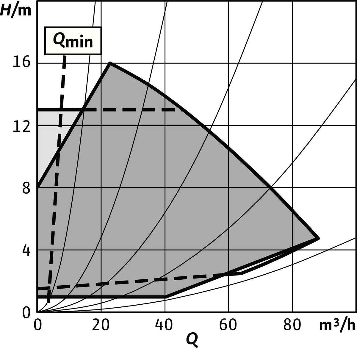 - Nastawne ograniczenie przepływu przez funkcję Q-Limit (Qmin. i Qmax.)
