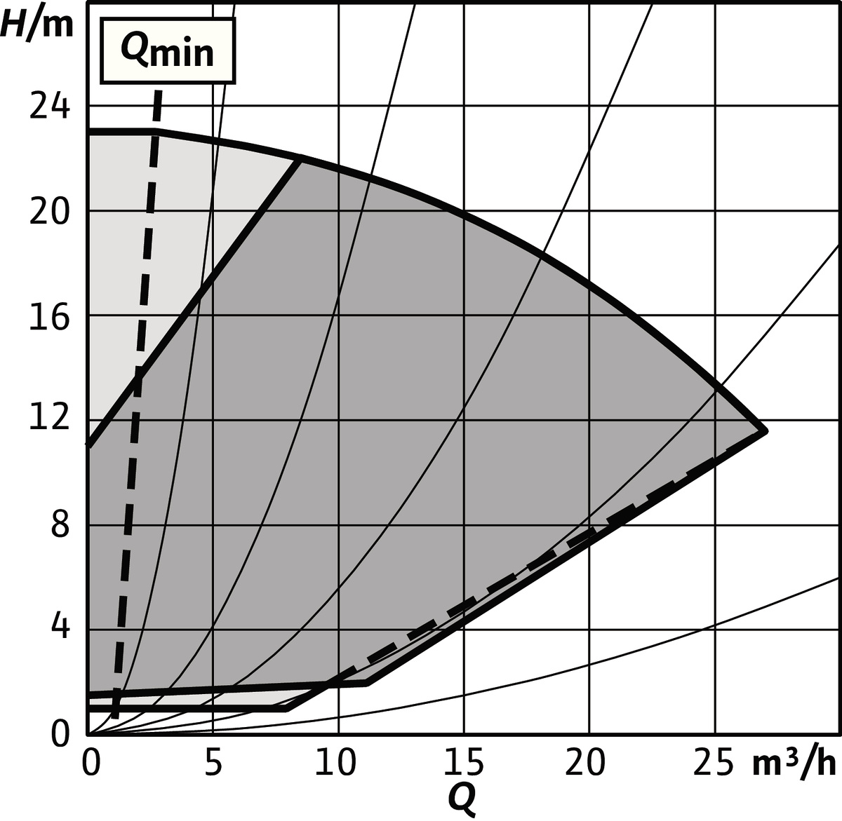- Nastawne ograniczenie przepływu przez funkcję Q-Limit (Qmin. i Qmax.)