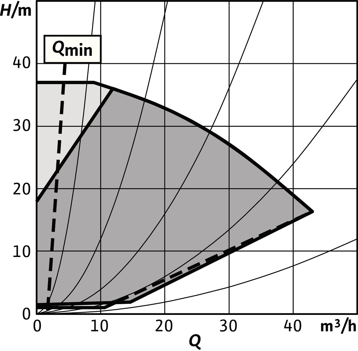 - Uszczelnienie mechaniczne do tłoczenia wody o temperaturze do Tmax. = +140 °C. Do T ≤ +40 °C dopuszczalna jest domieszka glikolu od 20 % do 40 % objętości. W przypadku mieszanin woda-glikol z zawartością glikolu > 40 % maks. do 50 % objętości i o temperaturze przetłaczanej cieczy od > +40 °C maks. do +120 °C lub przetłaczanych mediów innych niż woda należy zastosować alternatywne uszczelnienie mechaniczne.
