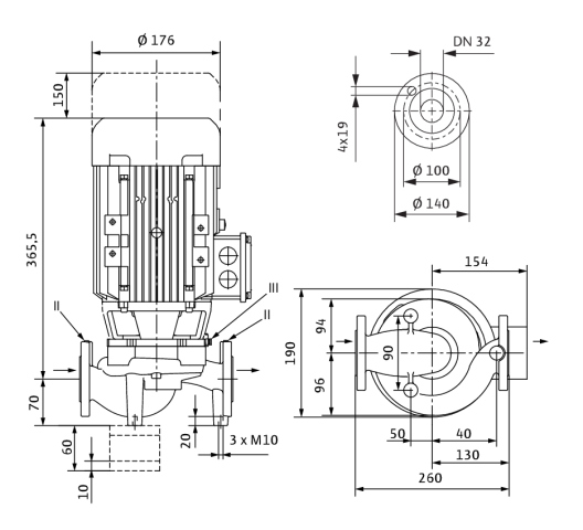 Pompa obiegowa WILO VeroLine-IPL 32/135-1,5/2-IE3 typu in-line z silnikiem znormalizowanym 50 Hz, moc silnika 1.5kW 3.18 A 2900 obr/min, wlot Kołnierz DN 32