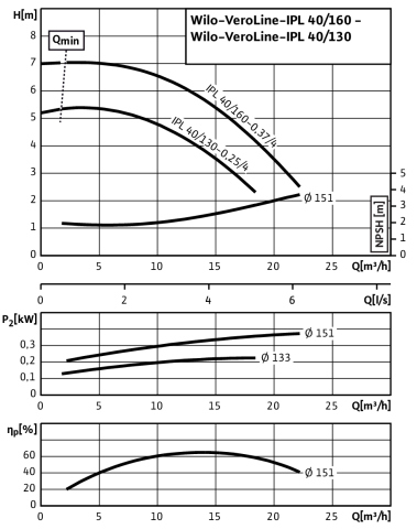 Pompa obiegowa WILO VeroLine-IPL 40/160-0,37/4 typu in-line z silnikiem znormalizowanym 50 Hz, moc silnika 0.37kW 1.06 A 1450 obr/min, wlot Kołnierz DN 40