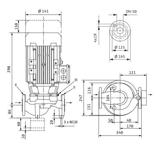 Pompa obiegowa WILO VeroLine-IPL 50/120-0,25/4 typu in-line z silnikiem znormalizowanym 50 Hz, moc silnika 0.25kW 0.69 A 1450 obr/min, wlot Kołnierz DN 50