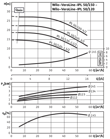 Pompa obiegowa WILO VeroLine-IPL 50/130-2,2/2-IE3 typu in-line z silnikiem znormalizowanym 50 Hz, moc silnika 2.2kW 4.5 A 2900 obr/min, wlot Kołnierz DN 50
