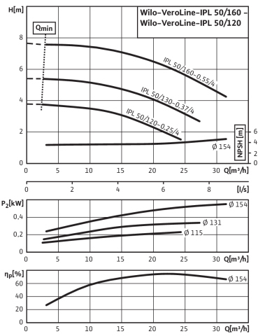 Pompa obiegowa WILO VeroLine-IPL 50/160-0,55/4 typu in-line z silnikiem znormalizowanym 50 Hz, moc silnika 0.55kW 1.45 A 1450 obr/min, wlot Kołnierz DN 50