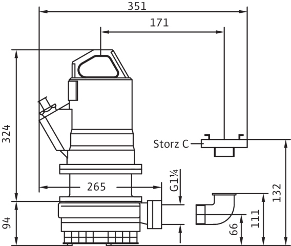 Całkowicie zanurzona pompa zatapialna do wody zanieczyszczonej, pionowe ustawienie mokre, do tłoczenia wody zanieczyszczonej i zawierającej piasek Wirnik, korpus hydrauliczny i silnika z żeliwa szarego. Przyłącze tłoczne z pionowym odpływem ciśnieniowym i złączem typu Storz. Silnik chłodzony powierzchniowo w wersji na prąd trójfazowy z komorą uszczelnienia, termiczną kontrolą silnika i certyfikatem Ex. Kabel zasilający z wodoszczelnym na całej długości wpustem i wolną końcówką. Do uszczelnienia po stronie medium i silnika służy uszczelnienie mechaniczne. Agregat można stosować poza strefami zagrożenia wybuchem w podsysającym trybie pracy bez ograniczeń.