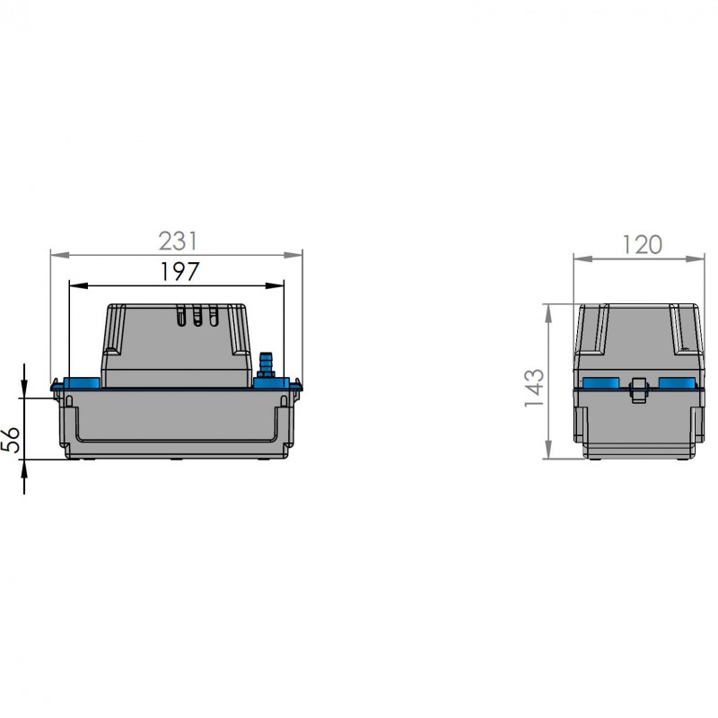 Można ją zainstalować na ścianie lub postawić na podłodze. Mniejszy gabaryt w stosunku do Sanicondens Plus, ale też mniejsze parametry wypompowywania.