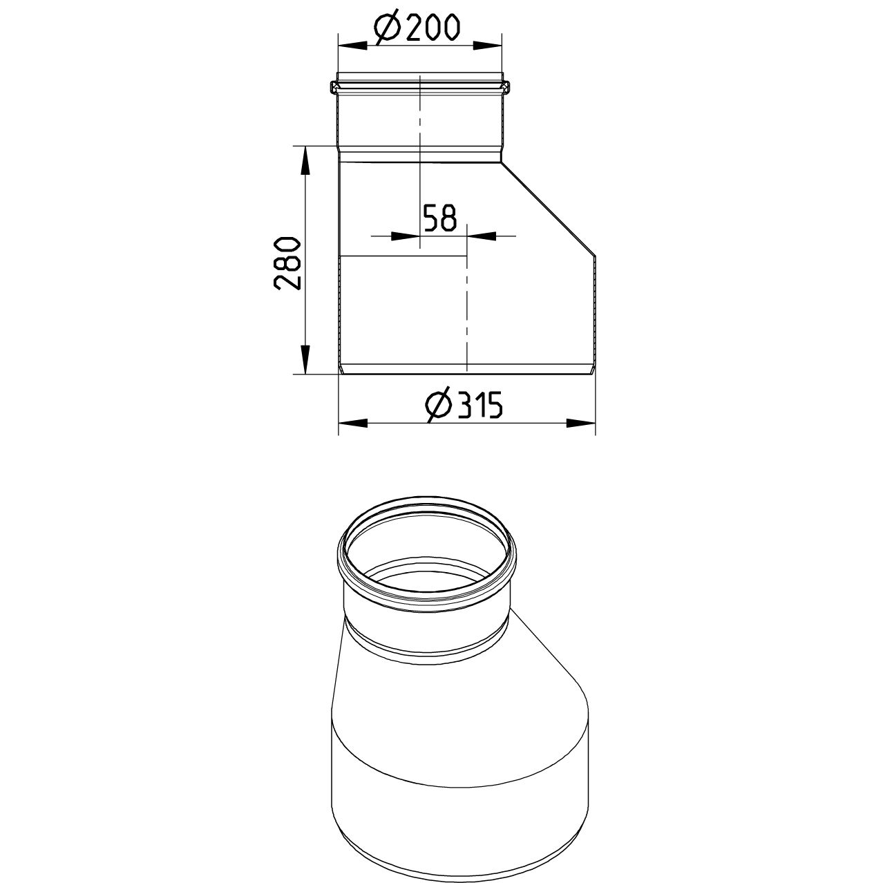 Powiększenie zmiana średnic DN 200 kielich X 315 mm bosy
