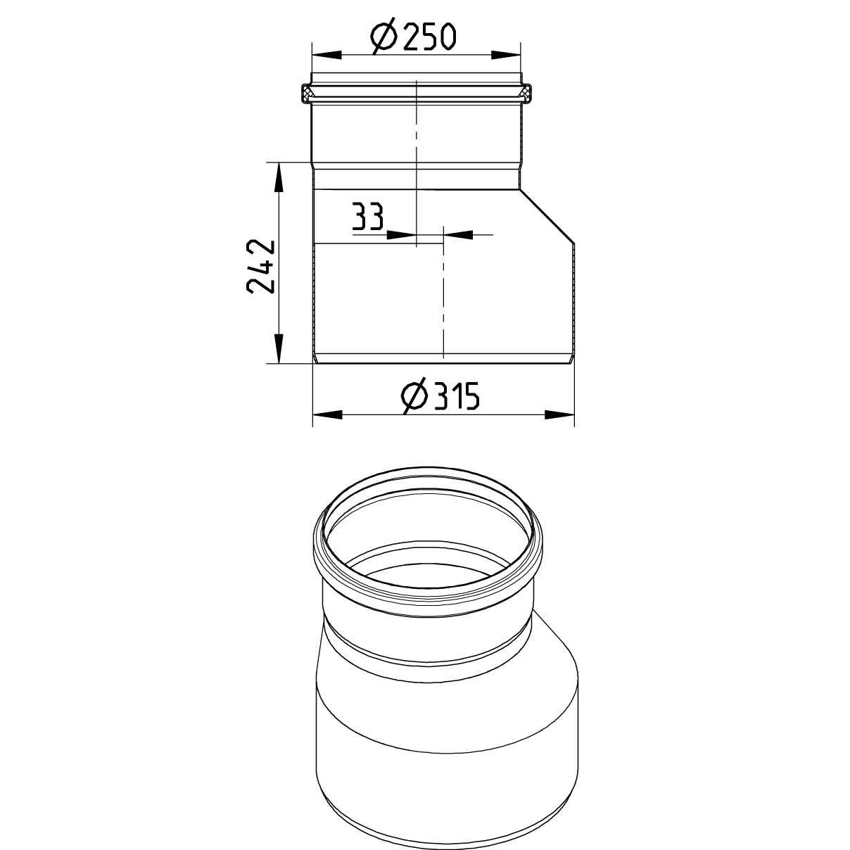Powiększenie zmiana średnic DN =250 kielichx315 mm bosy, stal kwasoodporna