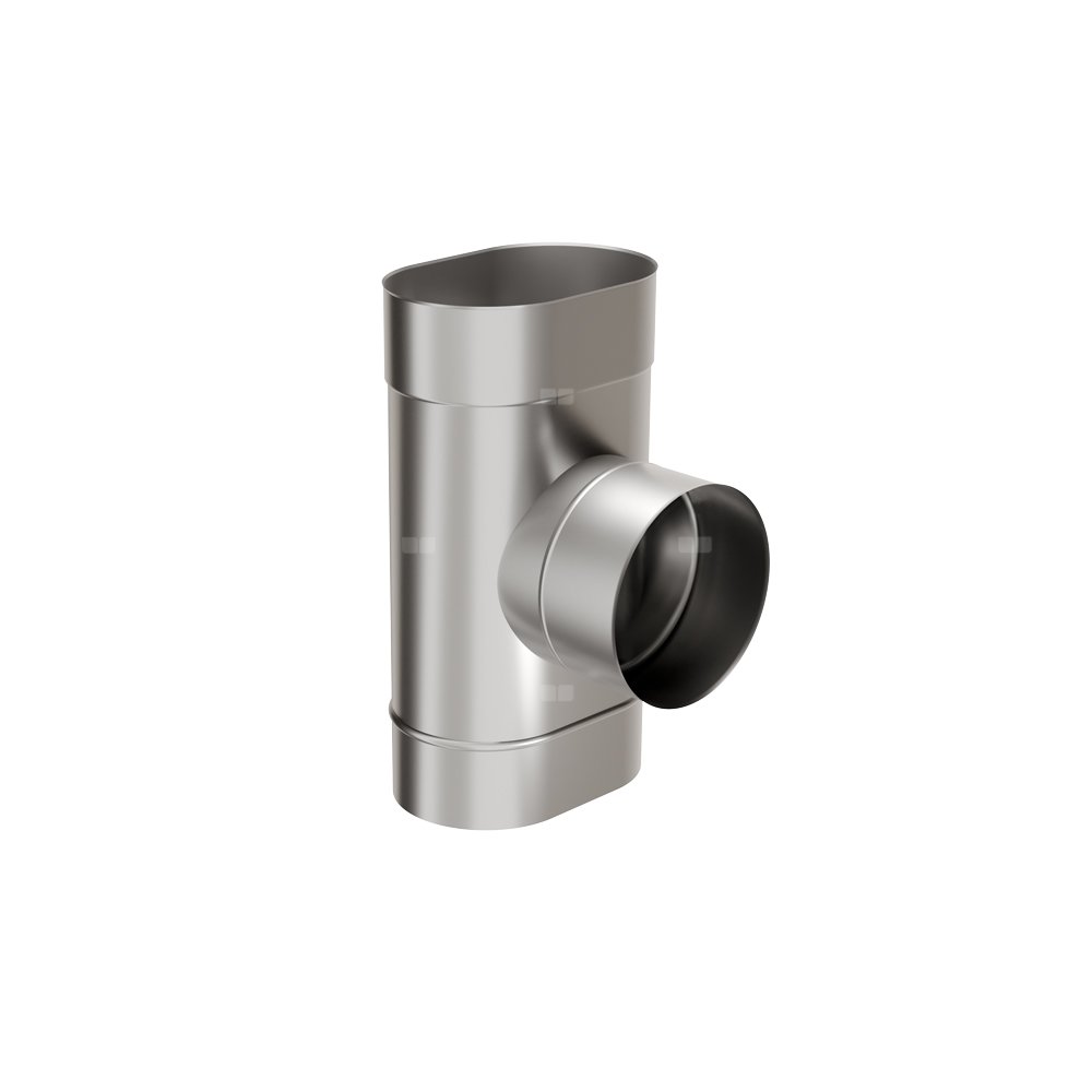 Trójnik TRSZOBI 90° jest to element systemu jednościennego MKSZOI, łączący komin z częścią poziomą (czopuchem) pod kątem 90°. Wyjście okrągłe w trójniku znajduje się po szerszej stronie owala.