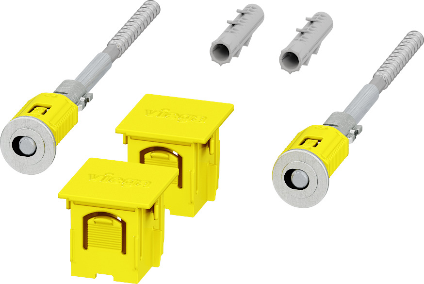 Prevista Dry-zestaw mocujący. Przeznaczenie: montaż pojedynczy stelaży Prevista Dry przy ścianie pełnej, nr wzoru 8573, nr kat. 776 626, M: 8 ilość w zestawie: 2