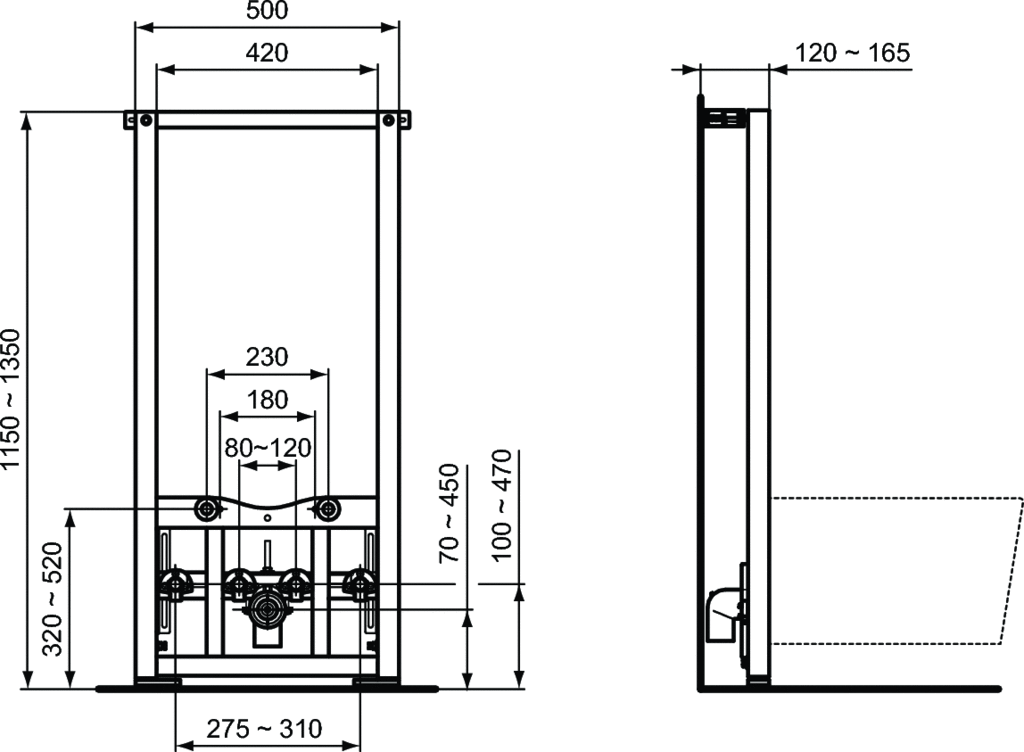Instalacja: zabudowa podtynkowa z mocowaniem ściennym. Odporność na korozję i obciążenia do 400 kg. System montażu zapewniający szybką i łatwą instalację. Wsporniki z blokadą ułatwiającą montaż i regulacją wysokości w zakresie od 0 do 200 mm. Minimalna głębokość montażu 120 mm. Elementy w komplecie: - Standardowy zestaw montażowy do bidetu. Kompletny zestaw montażowy do stelaża, wraz ze wspornikami ściennymi. Kolano rury odpływu. Przyłącza wody G ½ - 2 szt.