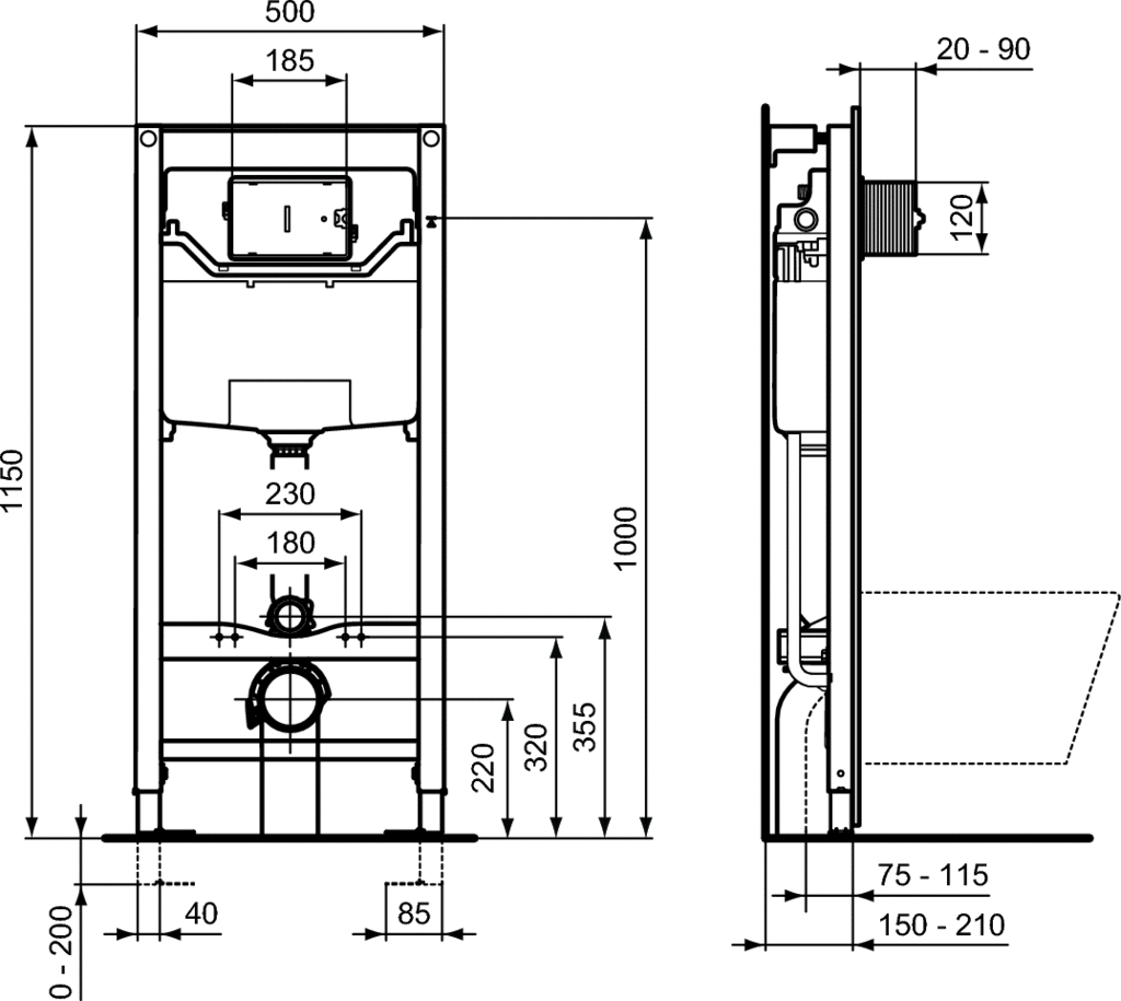 Do miski wiszącej WC. Podtynkowa instalacja, montaż do ściany. Stelaż testowany na obciążeniu 400 kg. Rama zabezpieczona i odporna na korozję. Szybka instalacja z systemem EasyFix. Regulacja głąbokości montażu i kierunku kolana rury odpływowej. Wsporniki z blokadą ułatwiającą montaż i regulacją wysokości w zakresie od 0 do 200 mm. Minimalna głębokość montażu 150 mm. Mechaniczny system spłukujący, możliwość zastosowania pneumatycznego lub elektronicznego systemu spłukującego (wraz z zamawianym oddzielnie zestawem do montażu przycisku). Spłukiwanie 2 funkcyjne, fabryczne ustawienie 6/3 l, regulacja spłukiwania: 4/2 i 6/3 l. Zbiornik spłukujący wykonany z polipropylenu (PP), odporny na temperaturę, wyposażony w obudowę antykondensacyjną. Zawór SmartValve (oszczędność do 9 l wody/dzień), oznaczenie CE EN 14055 CL1, cichy zawór, zgodny ze standardami NF, klasa akustyczna pracy I, głębokość zbiornika 120 mm, 2 punktów przyłącza wody. Elementy w komplecie: Standardowy zestaw montażowy do miski. Kompletny zestaw montażowy do stelaża, wraz ze wspornikami ściennymi. Komplet przyłączeniowy do miski WC (rura odpływowa i dopływowa). Kolano odpływowe i adapter ø90/110. Gumowa uszczelka do miski ø 45. Zaślepka montażowa do systemu spłukującego. Zawór zamykający G ½". Do skompletowania z zamawianymi oddzielnie przyciskami spłukującymi i zestawami do montażu przycisków.