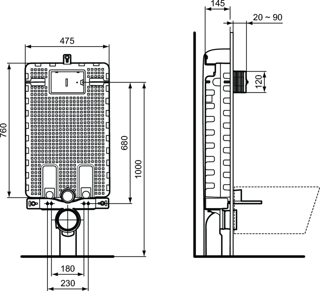 PRODUKT NIEDOSTĘPNY. Odpowiedni do miski wiszącej WC. Zbiornik izolowany (z solidną warstwą styropianu pokrywającą cały. zbiornik) w celu wyciszenia. Do montażu w ścianach murowanych. Przetesowana nośność: 400 kg. Minimalna głębokość montażu: 145 mm. Wbudowany zbiornik z mechanizmem spłukującym przednim,. możliwość zastosowania pneumatycznego lub elektronicznego. systemu (z użyciem zamawianego oddzielnie zestawu). Spłukiwanie 2-funkcyjne, fabryczne ustawienie 6/3 l, łatwa. regulacja umożliwiająca zredukowanie objętości z 6 do 4,5 l. Zbiornik spłukujący wykonany z polipropylenu (PP) wyposażony. w obudowę antykondensacyjną. Zawór spłukujący SmartValve (oszczędność do 9 l wody/dzień),. oznaczenie CE EN 14055 CL1, komfort akustyczny zgodny. z cetyfikacją NF, klasa I, głębokość zbiornika: 120 mm, 1 przyłącze. wodociągowe. Elementy w komplecie: - Sprzęt do montażu miski WC. Zestaw do montażu stelaża. Komplet przyłączeniowy do miski wiszącej (rura odpływowa. i dopływowa). Gumowa uszczelka do miski Ø45 mm. Kolano odpływowe i adapter Ø90/110 mm. Zawór zamykający G ½”.