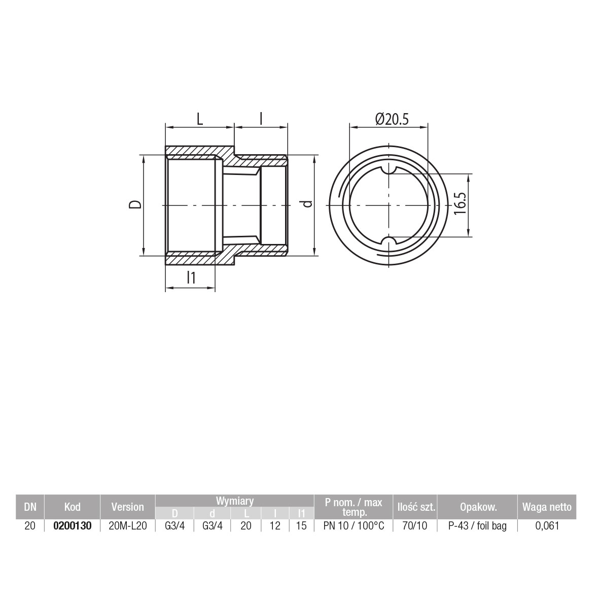 Przedłużacz śrut 20M TWIST L20 - 3/4
