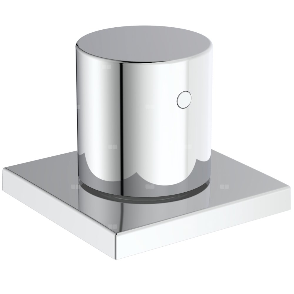 Zestaw montażowy podtynkowego przełącznika przepływu (widoczna część). Cylindryczny uchwyt. Kwadratowa, metalowa rozeta bez logo. Niezbędne wyposażenie: A2391NU (część wewnętrzna): przyłącze gwint G1/2'', rozdzielacz 3/4'', 3 wyloty.