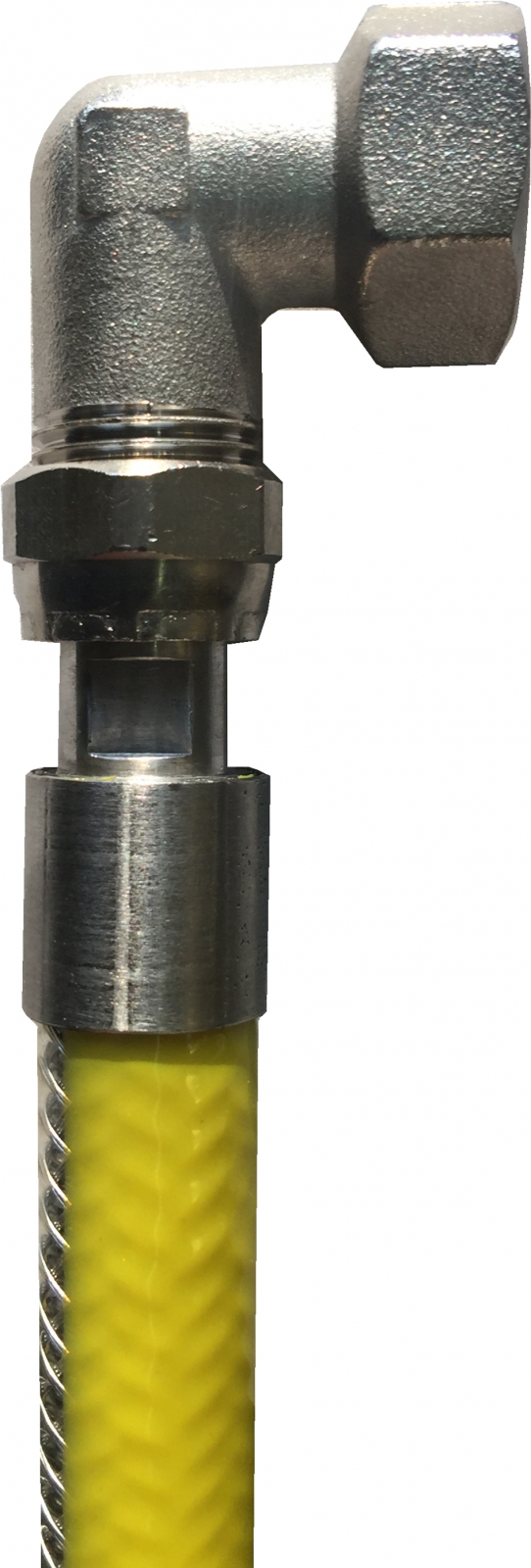Elastyczny przewód z rury falistej ze stali nierdzewnej do przyłączania domowych urządzeń zasilanych paliwami gazowymi. Typ 114 z podłączeniem kątowym G 1/2" i końcówka stałą z gwintem wewnętrznym Rp 1/2". Średnica: DN12, Typ: kątowy, Podłączenie: Rp1/2" - G1/2", Długość: 2000 mm, Maksymalne ciśnienie robocze: 0,5 bar, Maksymalna temperatura robocza: 60 ºC