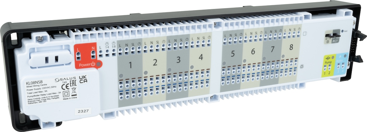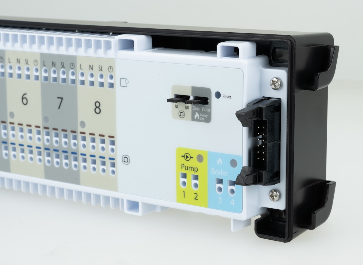 - Umożliwia podłączenie regulatorów do grzania/chłodzenia płaszczyznowego.- Łączy się z regulatorami przewodowo.