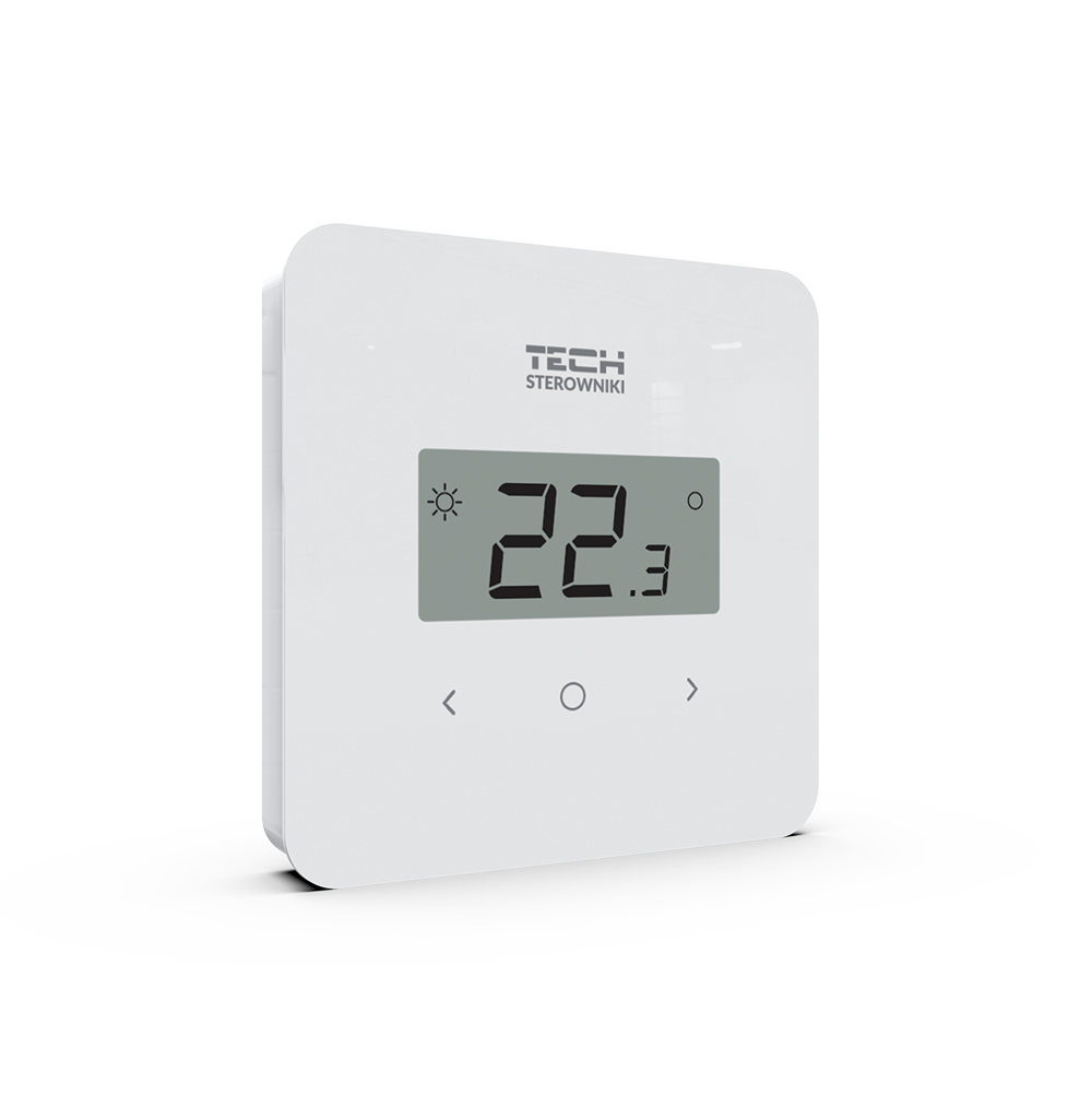 Przewodowy regulator pokojowy dwustanowy - duże cyfry (panel przedni ze szkła) biały, model T-2.1