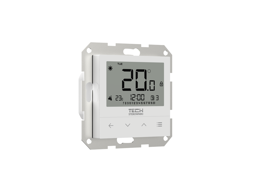 PRZEWODOWY Regulator pokojowy DWUSTANOWY TYGODNIOWY DO SYSTEMÓW RAMKOWYCH biały, model F-4z v1
