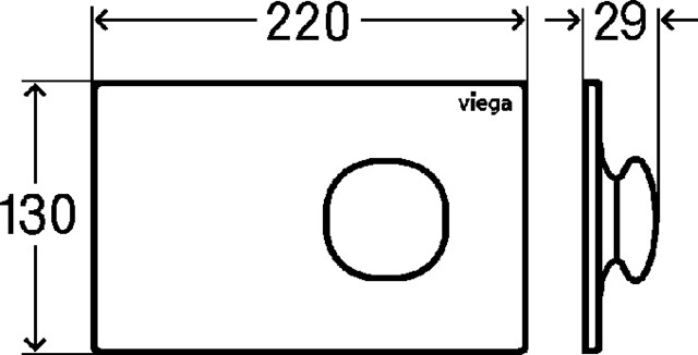 Przycisk do WC ekspozycyjny Prevista, Visign for More 202. Przeznaczenie: wystawa branżowa, bez funkcji. Wyposażenie: Materiał do mocowania, nr wzoru 8622.19, nr kat. 774 165, płytka maskująca: metal biały błyszczący klawisz: metal chromowany