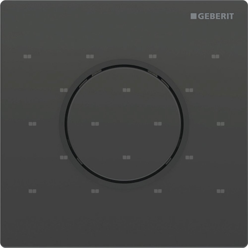 Przycisk uruchamiający Geberit typ 10 do zaworu spłukującego do pisuarów z pneumatycznym uruchamianiem spłukiwania, płyta i przycisk: czarne, pierścień ozdobny: czarny mat