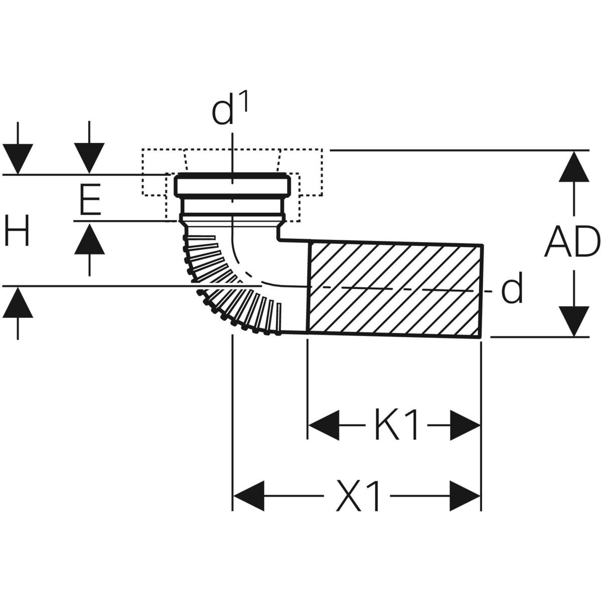 Króciec przyłączeniowy z PE-S2, z możliwością skrócenia Do standardowych wpustów dachowych Geberit
