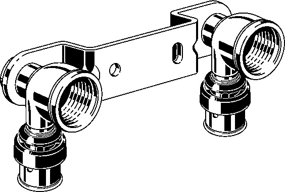 Viega Smartpress -jednostka montażowa z SC-Contur - stal ocynkowana - przyłącza zaprasowywane, gw Rp. Wyposażenie: Uchwyt odsadzony, kolanko z brązu krótkie nr wzoru 6724 nr kat. 730 130