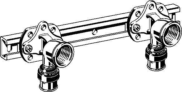 Viega Smartpress -jednostka montażowa z SC-Contur - stal ocynkowana - przyłącza zaprasowywane, gw Rp - tłumi drgania, zmienne wymiary rozstawu. Wyposażenie: Uchwyt, kolanka ze złączkami naściennymi z brązu nr wzoru 6741 nr kat. 730 628