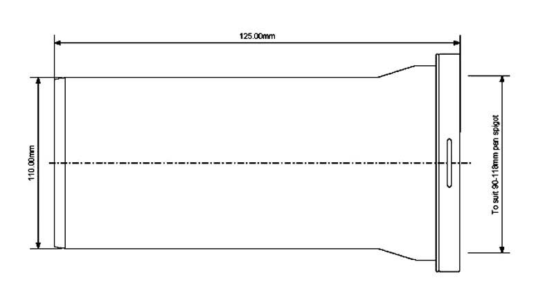 Przyłącze kanalizacyjne długie, L-260mm. Wejście 90-118mm z uszczelką wargową, wyjście 110mm.